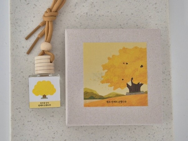 노란 나뭋잎 사이로 부는 그린 시트러스의 산뜻함 천연기념물 제 176호. 1317년 은행나무에서 영감받은 향기. 노란 잎의 이미지, 시트러스계열의 상쾌함. 싱크러운 그린함과 은은한 우디함이 공존합니다. 풍경과 시간을 담은 자연의 향기입니다. 디퓨져는 차량용, 실내용이있으며, 멀티퍼퓸으로도 구매가능합니다.